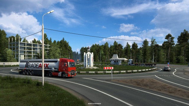 As the team makes steady progress with the Heart of Russia DLC development, there’s been a steady drip-feed of new info being rotated out to the Euro Truck Simulator 2 fanbase. The latest developer update includes a look at the prominent entrance monuments that players will encounter on their journeys between Russian settlements. These “unique structures” are made of various materials and feature all sorts of intricate designs.