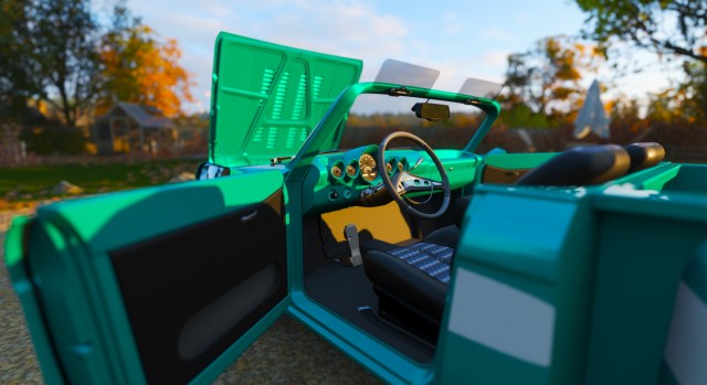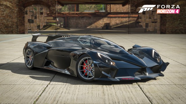 The Tachyon now bumps up the small number of EVs in Forza Horizon 4 by one. While it may not have the engine of a Buggati Cheyron, it does have aerodynamics on its side. It’s made out of carbon fiber (weighing less than 3000 pounds at that), has an all-wheel drive system, and six direct-drive electric motors that will quickly rocket it up to its top speed of 240 mph. To keep it grounded while road-flying, the Tachyon also boasts a rear wing and a ridiculous array of four front wings all to reduce drag and make sure you don’t accidentally take off. But this is Forza Horizon, so of course, you’re going to try to fly it anyway.