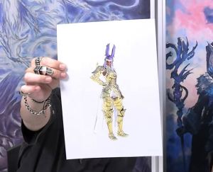 While we don’t have in-game renders of the armor, Yoshida held up pieces of paper to the screen, which he often does, to showcase the new designs.
