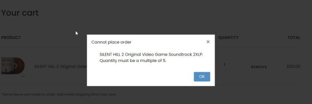 At 1:00 p.m. EST, the album was made purchasable in-store, and everything promptly fell apart. As fans rushed to the store, many encountered a strange bug: they could only purchase in increments of five. That meant that only a maximum of 100 people could purchase this exclusive vinyl release, leading to Konami running out in under a minute.