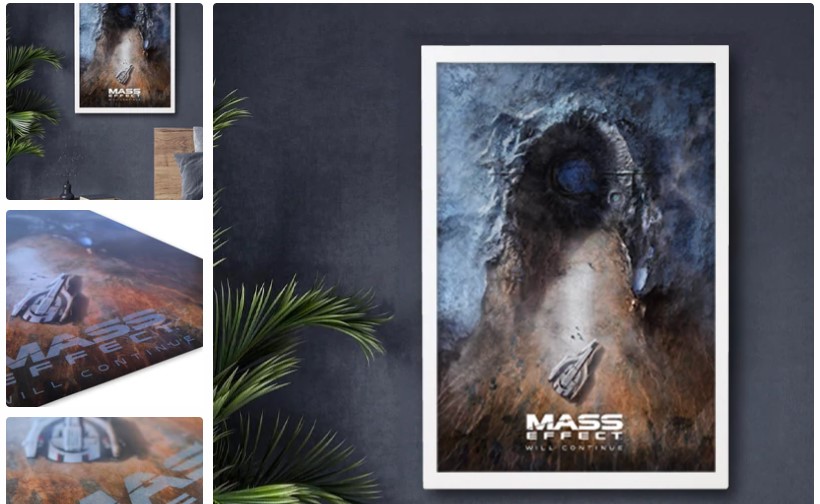 From here on, it’s spoiler town. I read the info so you don’t have to. You’re welcome. As spotted by VGC via YouTuber MrHulthen, a new item added to the BioWare Gear Store came with a description that clearly didn’t get checked. A lithograph featuring the Geth-head-shaped crater from the second teaser went on sale for $45 USD. It’s description, before it was changed, read: “While Shepard and the survivors are left to pick up the pieces, fans are left wondering what’s next.”