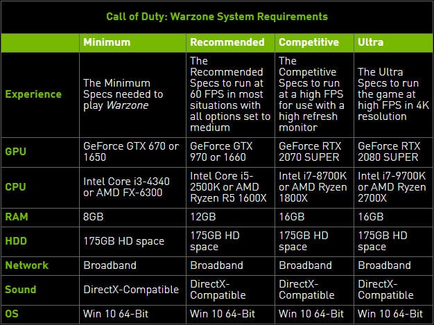 Call of Duty: Warzone system requirements and Nvidia driver out now