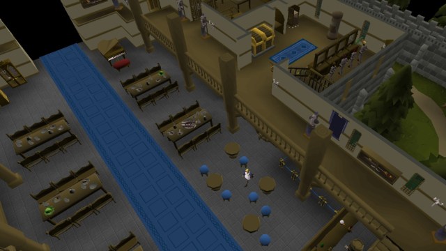 The Clan Hall is primarily a social hub but does offer some skilling facilities too. Amongst these are a bank, a deposit box, an altar, and an oven. Furthermore, the hall contains a coffer where members of a clan can deposit and withdraw funds. Currently, the coffer caps at one million GP, but this limit may be raised in the future.