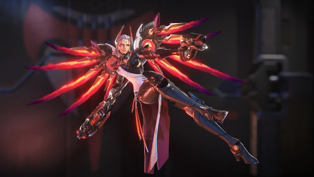 Instead of picking an old Mythic skin, you’re free to take the new Mercy Mythic skin called “Vengeance” which will have three color combinations and masks. You’ll also receive two hair options, as well as some Caduceus Staff variations.