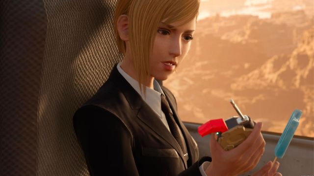 The Easter Egg happens at the end of Chapter 8: All That Glitters after leaving Corel Prison. Rude and Elena are hot on the tail of Cloud and his gang, following them in a helicopter while watching a certain angry Shinra Space and Aeronautics Director attempt to face the protagonists in battle. If you look closely during this scene, Elena is munching on a bar of Sea Salt Ice Cream.