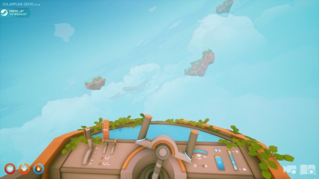 Solarpunk is set up as your typical survival-crafting game, where you scavenge for resources and build a base, but on a bunch of floating islands in the middle of nowhere. You can’t settle down and build a base, exactly, which is a good thing.