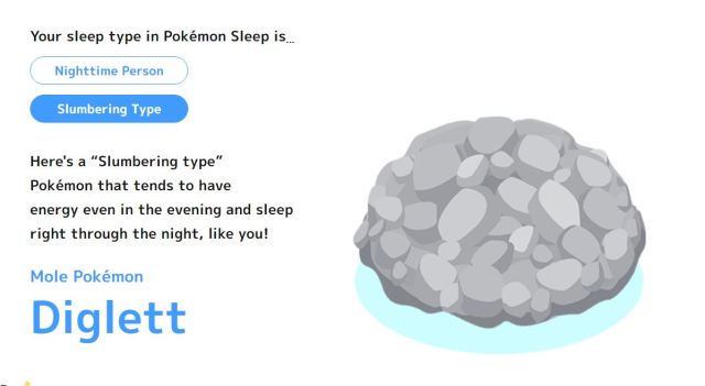 There are many different options for Pokemon and sleep type, so be sure to share it with your friends and see what everyone gets.
