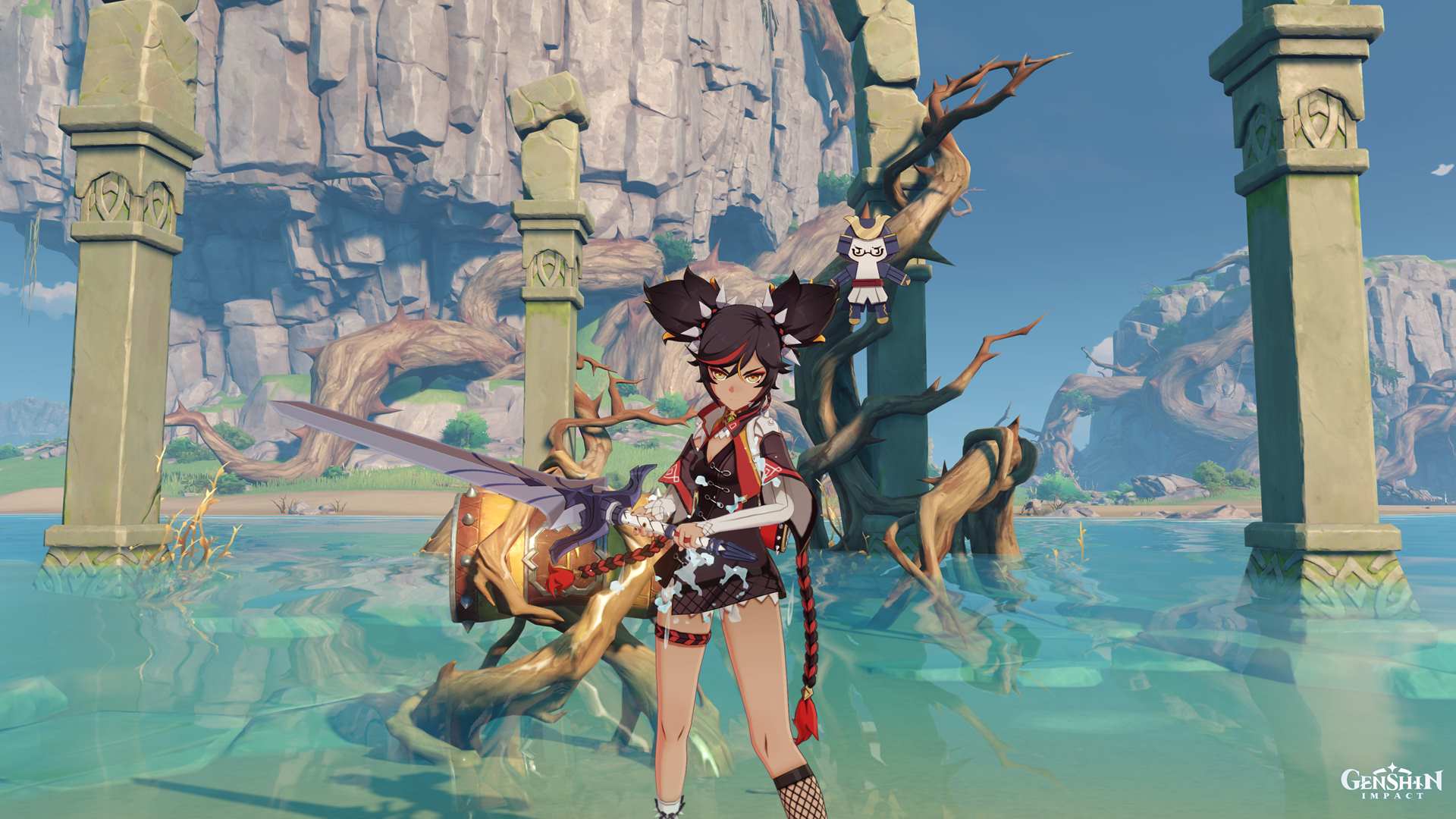 You can change the mountain style and height in Genshin Impact's Broken Isle area.