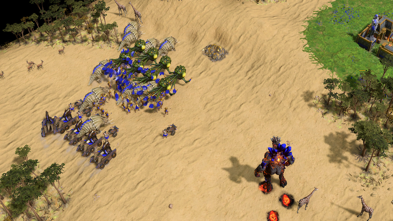 After some reflection, I think I figured it out. The units are virtually all the same in Age of Mythology: Retold. They may look different and be different sizes, but ultimately, the melee units will hack and slash and the ranged units will shoot. Whether I was playing with an army of Cyclopes and Nemean Lions or Minotaurs and Manticores, ultimately I did the same thing. Overproduced them and shoved them into combat.