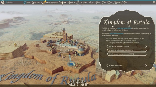 Once you bring a city into the fold of the Airborne Kingdom, it then opens up additional options such as the trade of goods and intelligence. Intel is then used to form the basis of your ship’s constantly advancing technology. The academy then researches these blueprints to become new pieces of the puzzle when designing the ever-expanding ship. The academy can also research innovations to existing technologies such as building stronger propellers that use less coal, adding additional planes to the airport, or discovering ways to ensure that citizens consume fewer rations daily.