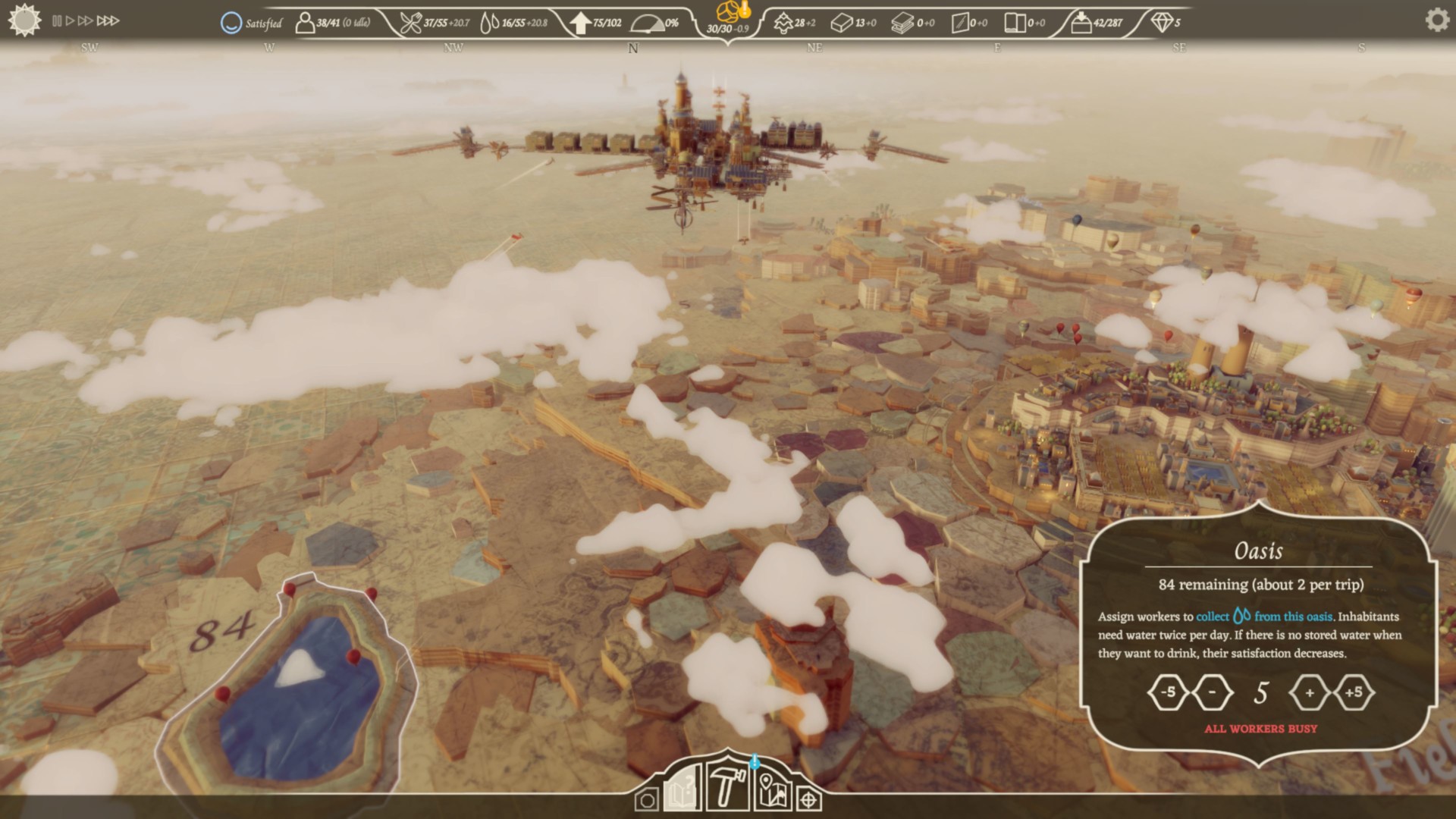 After once again uncovering the secrets of flight, it’s your job to reunite all of the factions of earth under the same unified rule, one city at a time. As part of this quest, the goal is to construct your own community in the clouds, starting with only a town square and a handful of ambitious volunteers. Thus begins what ultimately boils down to SimCity in the atmosphere, and I say that in the most complimentary way possible.