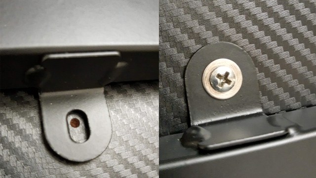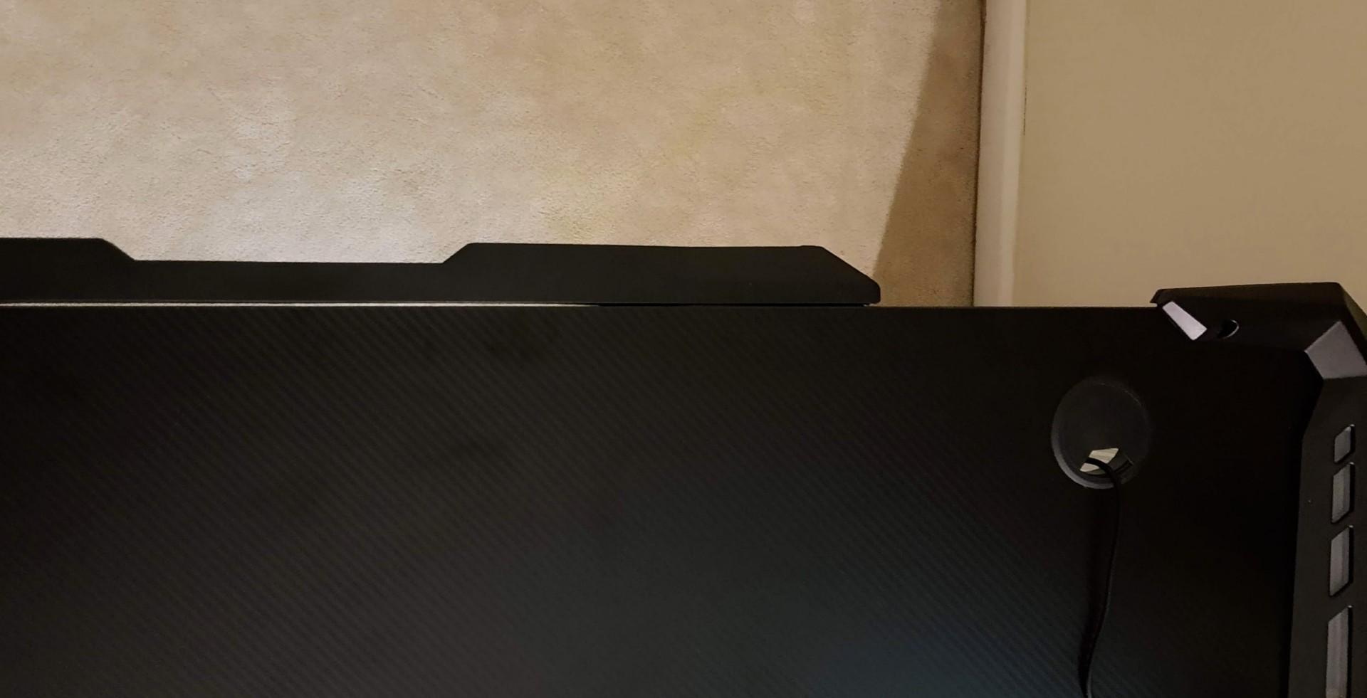 Fortunately, I can say good things about the carbon fiber laminate, which I was initially concerned would be cheap. Here’s the great news. You can leave puddles of water on it for hours and beat it with the tip of the screwdriver without breaking through the material. It’s tough, well implemented, and looks great. The only thing gripe I have is that it tends to accumulate some light oil smudges. You can clean the desk with some degreaser though and the leftover is barely noticeable.