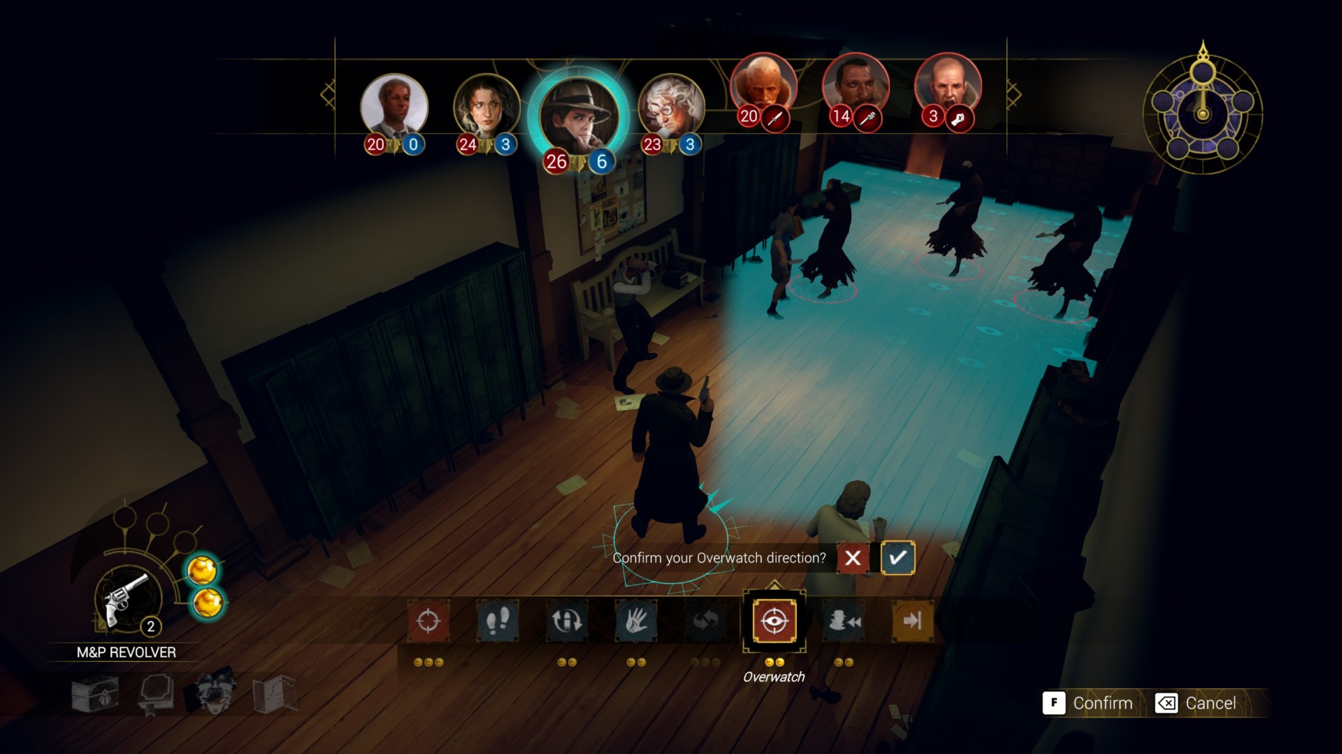 The aforementioned issues are compounded by the combat system in Arkham Horror: Mother’s Embrace. While long-time turn-based tactics/strategy gamers will be familiar with these concepts, this title doesn’t really offer anything new or fresh. You have your usual attacks, action point requirements, overwatch, a “refocus” (wait) command to boost initiative, and so on.
