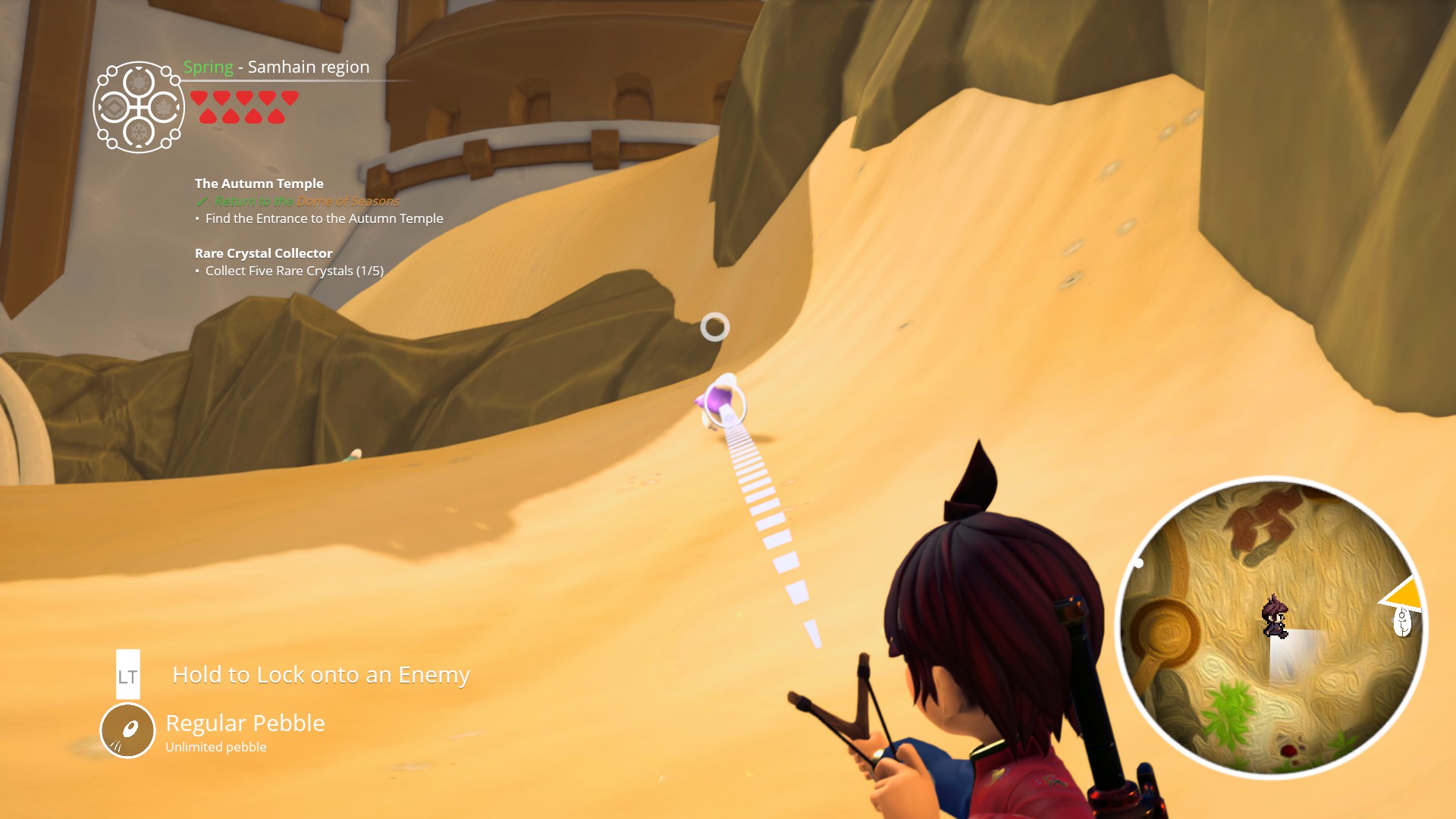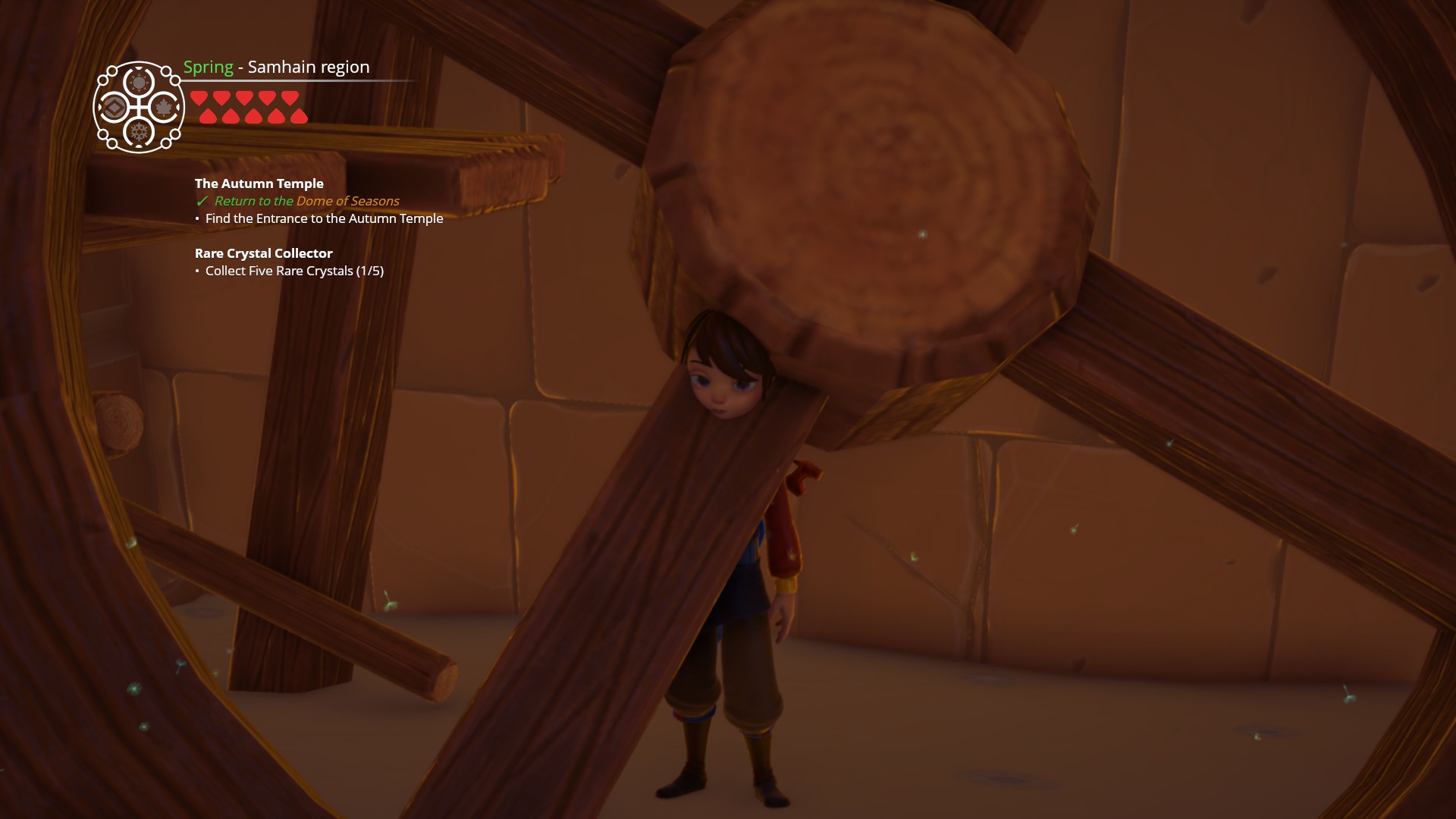 The structure of Ary and the Secret of Seasons is similarly uneven. The first couple of hours see Ary traveling to various settlements in order to move the story forward. These places are large and packed with NPCs that offer sidequests, although most of those NPCs stand motionlessly. After this section, though, the game completely shifts gears and you’re told to go collect four MacGuffins from the season temples. Naturally, you don’t really go into towns anymore and the sidequests dry up. It just feels like something is missing.
