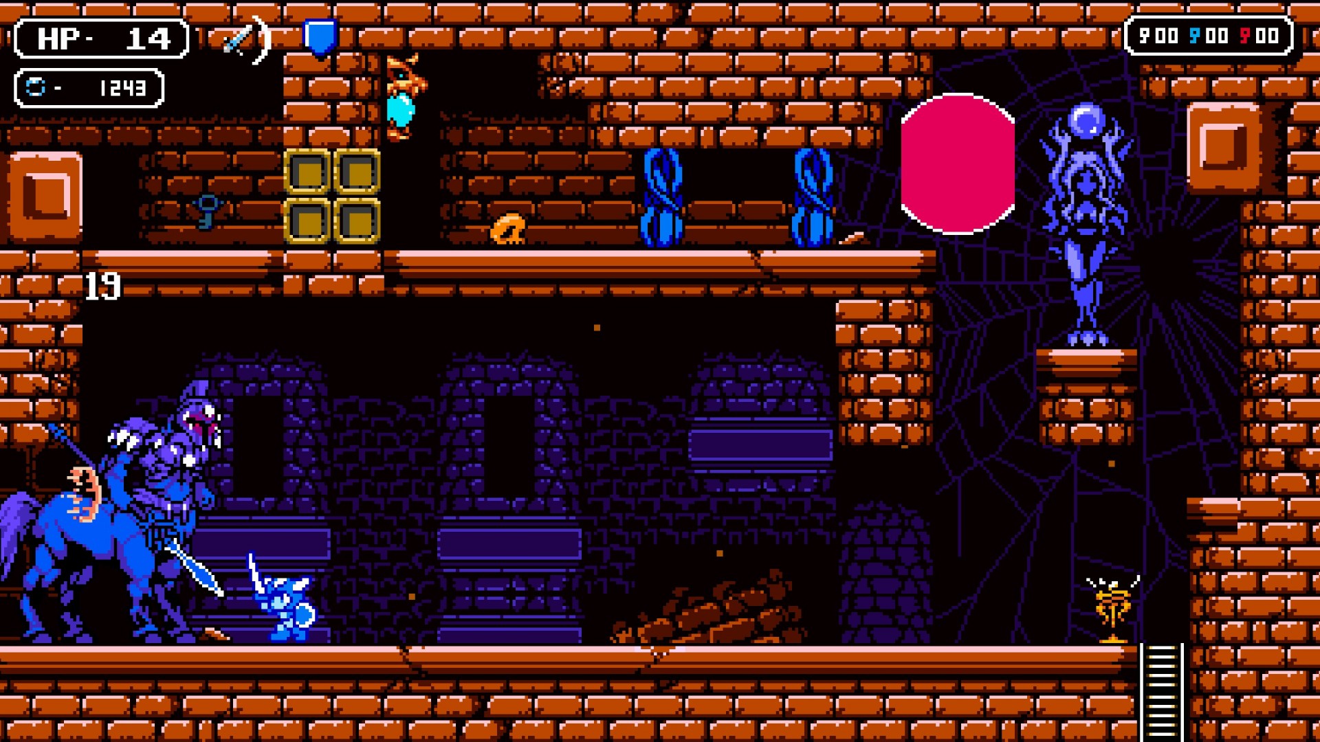 Astalon focuses on the journey of a trio seeking to rid their home of poisoned waters. A nearby tower is polluting their water source, so they head out to put a stop to it. Unfortunately, the tower is crawling with monsters and protected by a black knight that’s happy to cut down any foes that step into his line of sight. Our initial three heroes are based on classes. The main character is Algus, the mage that uses spells to fight at mid-range. Then there’s Arias, the short-range knight that uses a sword. Finally, there’s Kyuli, a ranger that can climb walls.