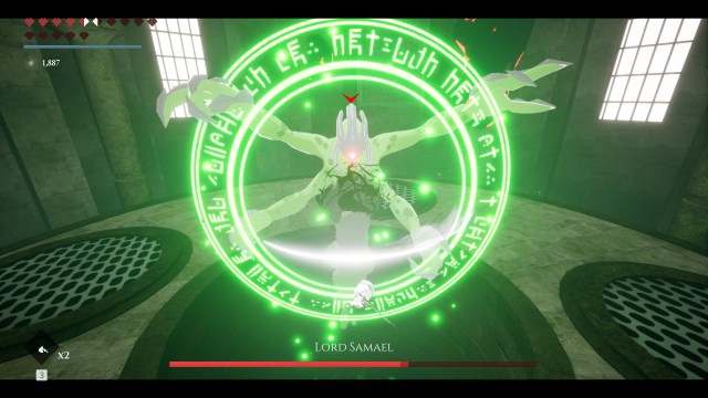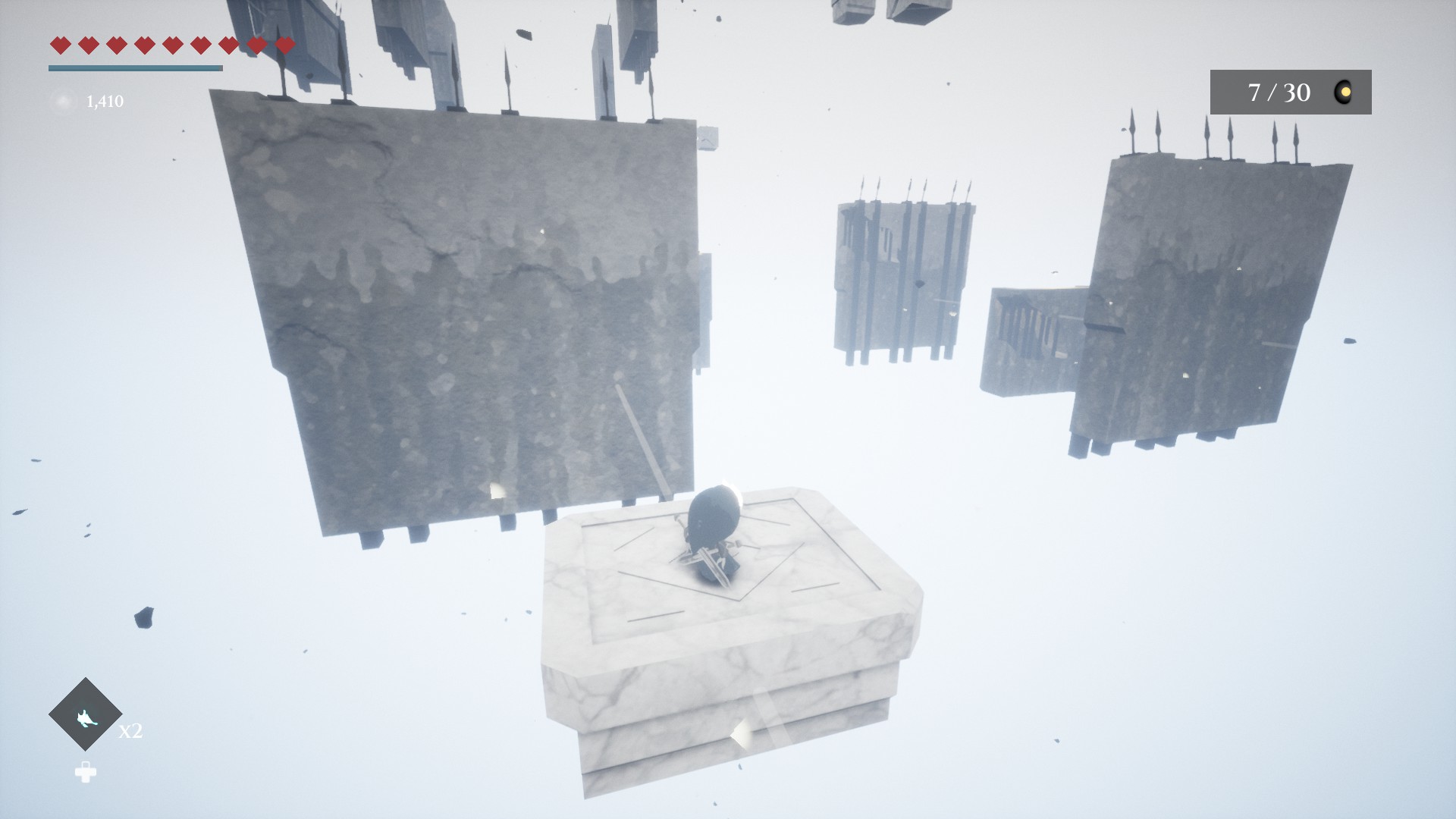 Healing in Blue Fire works via pickups that respawn like Estus Flasks. You can also find more by smashing objects or defeating enemies. The main currency is ore that you strangely get from breaking the aforementioned objects. But you need tons of it to buy anything or unlock the game’s bonfire-esque save points. This means you’ll need to farm ore by breaking objects for a while. If you die, you drop all of your ore and can pick it back up by finding the spot of your death. At least, sometimes. Dying often resulted in my death drop vanishing. I can think of literally no reason for this mechanic to be copied and pasted here. It’s pointless. One boss also caused the game to lock up repeatedly upon respawning. This forced me to restart the program over and over.