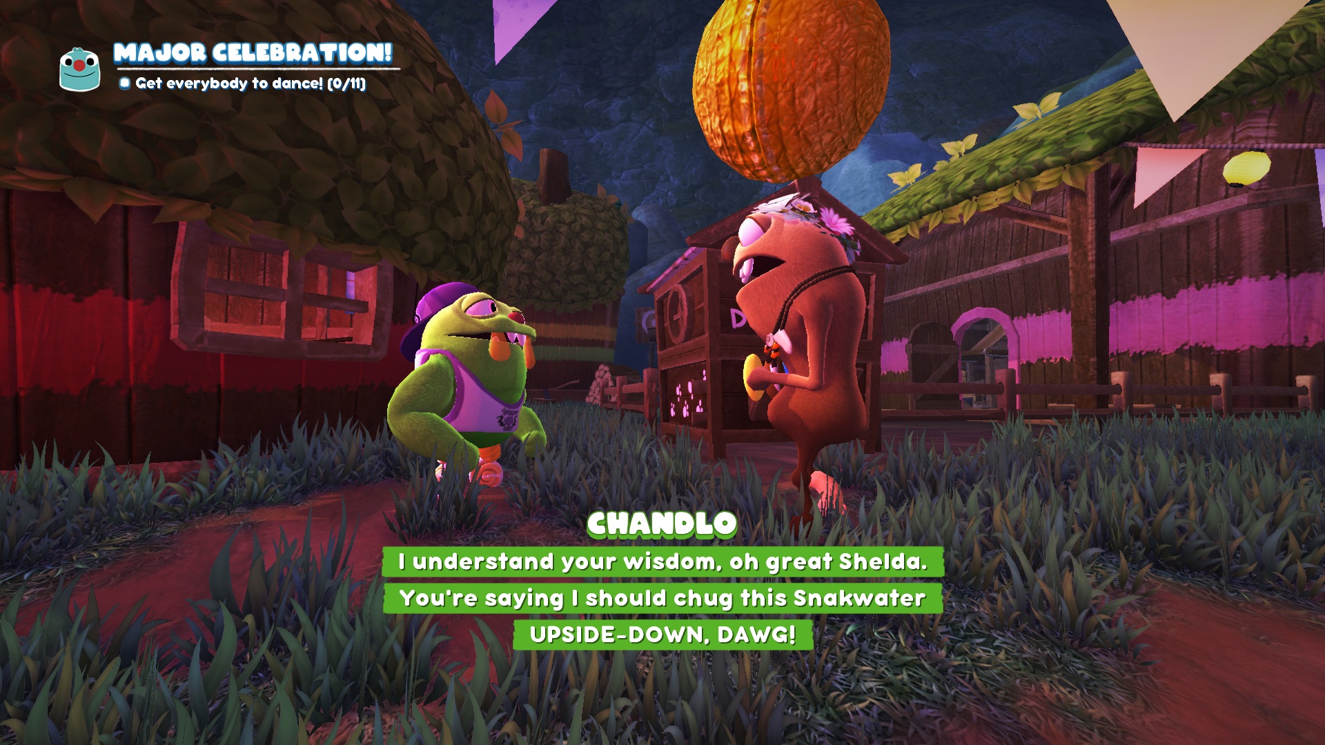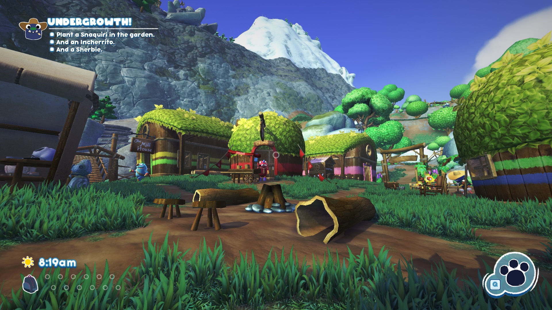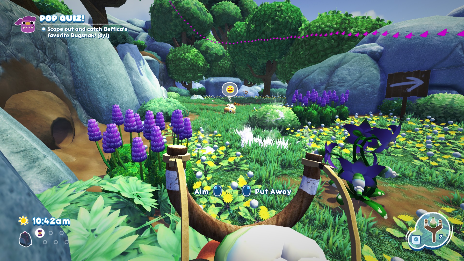 While this becomes a prominent narrative device in the game, the gameplay is oriented around hunting the critters. Upon your arrival, the citizens of Snaxburg, the island’s hub, are looking the worse for wear. Lizbert and their partner Eggabell have been missing, and the lack of leadership has done a number on the town’s morale. To get the scoop you need, you have to round up all of the citizens and piece together the mystery of Lizbert’s disappearance. To that end, you’ll scan, wrangle, attack, and capture all manner of Bugsnax.