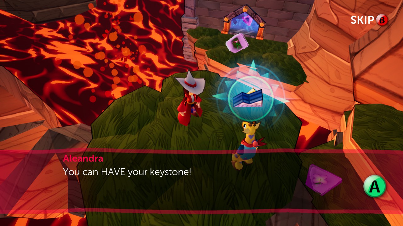 Speaking of those costumes, some of them are different versions of George. But you can pretty much just dress up as other characters, including the antagonists. You can fight Aleandra while using Aleandra’s character model. It’s pretty funny. I was overjoyed upon stepping into the first of the four main areas, as it had just as many collectibles to grab as the main hub. Getting that first keystone felt substantial, culminating in a trip to a strange world filled with rotating platforms that looked as if they were made of shifting, metallic paper mâché. This had me pumped to see the rest of the game.