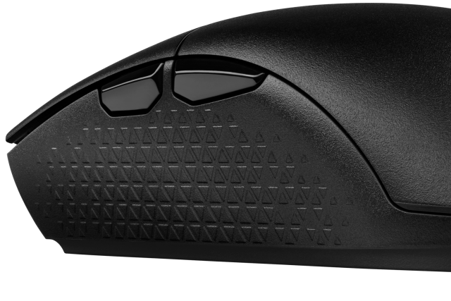 The side buttons on the Katar Pro XT on the other hand are just, for lack of a better word, squishy. Made of the same black plastic that makes up the rest of the mouse, these buttons are far more uniform and flush to the side of the device. It makes sense that they were designed this way, overall it lends to the sleek style of the mouse. In practice, though, the material makes clicking these buttons far less satisfying than the side buttons on any other mouse I’ve tried out.