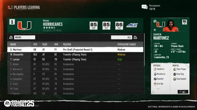 While you can scout players, send them DMs, and reach out to their friends and family to get them interested in your school, it really all comes down to selling them on your program once they’ve narrowed their list down to their top handful of universities. At that point, you’ll have to use all the knowledge you’ve gained and leverage your school’s unique bonuses to choose which factors to sell the prospects on the hardest. It feels great to beat out other schools with an ace up your sleeve, but you can also lose players just the same.