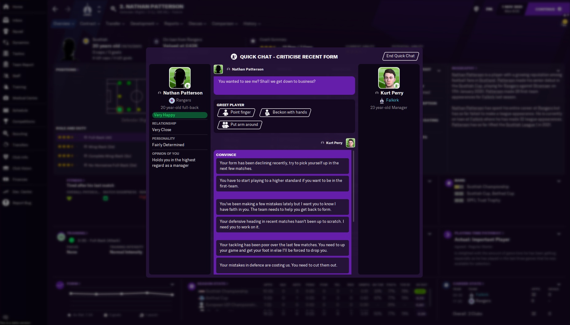 Given that this was a huge focal point from the developers leading up to release, it’s a little disappointing. Even when talking to a player privately, the main variable that decides if a chat goes well or not isn’t the gesture used. Your status at the club, relationship with that player, and the player’s personality are all more important. You can have an exceptionally successful save without even touching this new feature. And at that point, why even bother introducing it?
