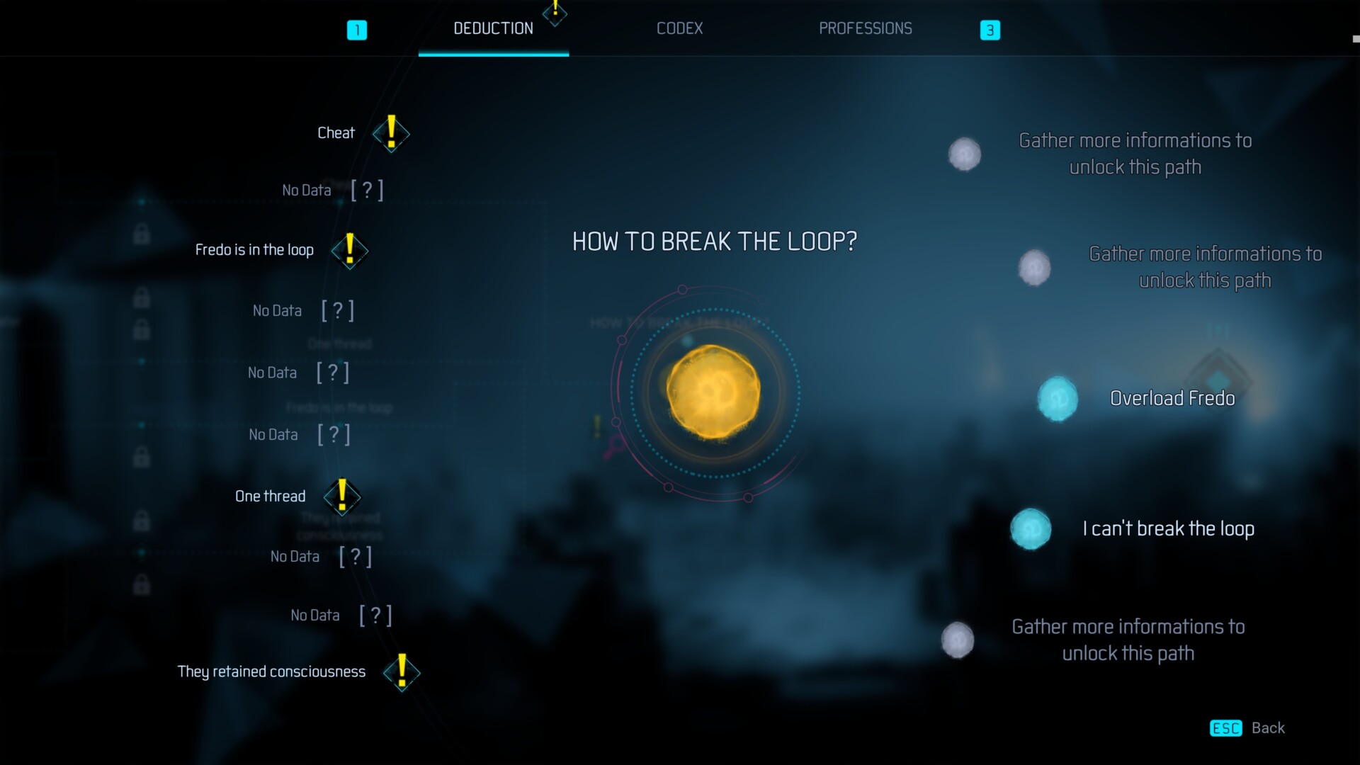 The important clues that you discover in Gamedec will be added to your Deduction screen. Think of this as akin to Sherlock Holmes’ Mind Palace. Depending on the leads that you obtain, you could then come up with a Deduction, your guess as to what may have caused a particular incident.