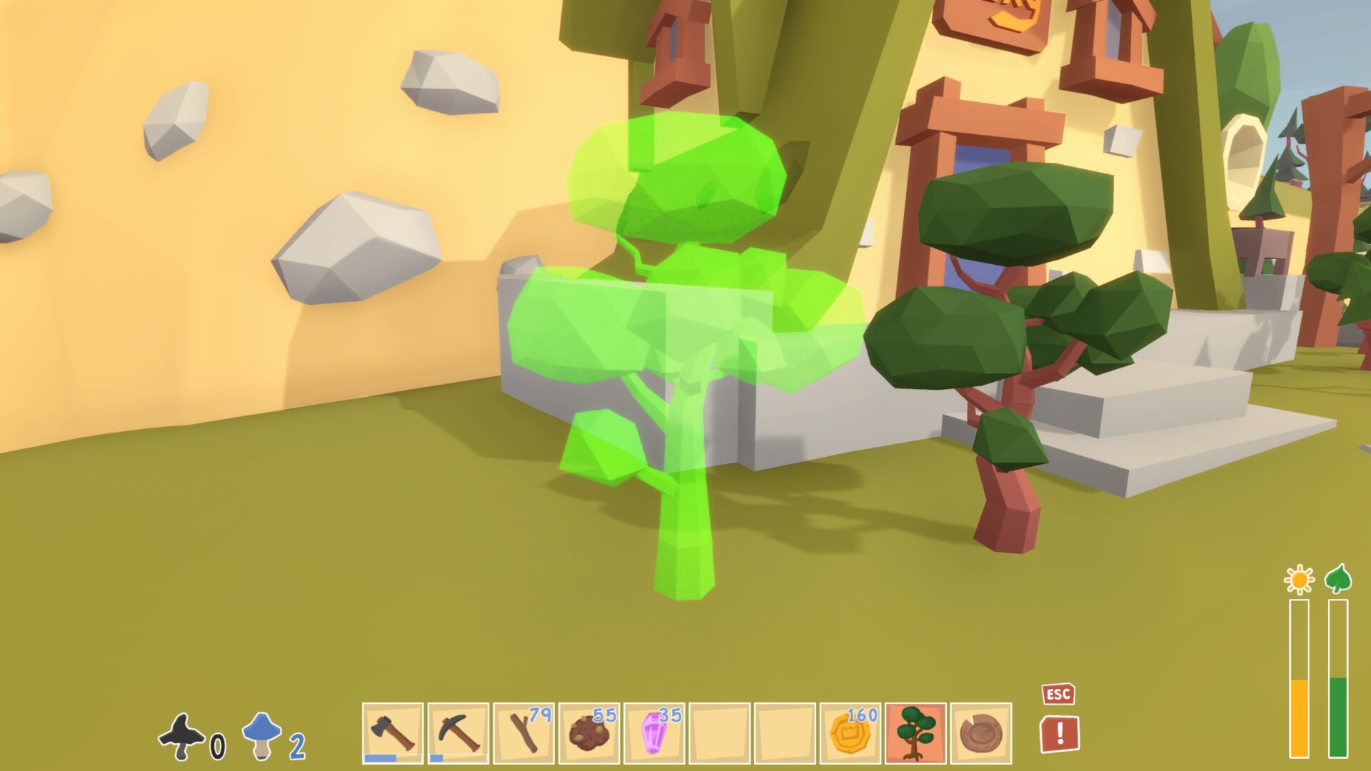 Gardenia has a lot of unique ideas when it comes to doing standard things. There’s technically a day-night cycle, but it’s handled totally different than what I’ve seen before. Instead of being on a timer, it’s tied to your energy. Picking things up, putting things down, chopping trees, mining — these all use energy. Each day starts at the break of dawn and only progresses as your energy is used up. Once almost all of your energy is used up, it becomes night. Conversely, you can run and jump around without interacting with anything indefinitely. I wish I had this power.