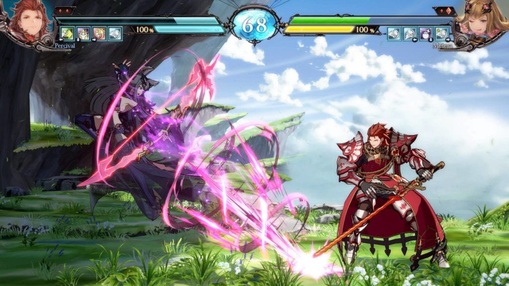 Fighting is based around three basic attacks – light, medium, heavy, that can all be repeated for simple short combos. One button controls each character’s ‘unique’ action. These complement each fighter’s overall style. For example, magic archer Metera relies a lot on range, so her unique is a dash that enables to put a lot of distance between her opponent quickly. Stoic swordmaster Narmaya’s unique switches between aggressive and defensive stances to unlock different specials.