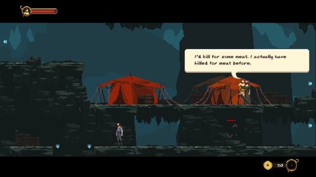 Taking a brief look at Guild of Darksteel makes it seem like a typical side-scrolling action adventure. You might even think it’s a Metroid-like. However, it is neither of those things. Instead, we get a narrative-focused game with repetitive rhythm-based combat where you can’t move, only block and strike. The combat is honestly better than it sounds and the game’s three hour story is compelling enough to get through, but it’s slight and simply doesn’t have enough to it to warrant a purchase from most people. You can certainly do worse, but the simplicity of the game’s level design and the adherence to identical battles hold it back.