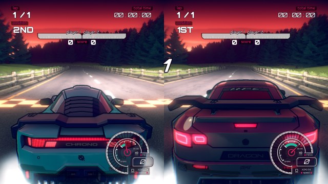 Every track has its own distinct identity and cadence. As you throw yourself and your vehicle of choice against the tracks, every bump and bend will burn itself into your muscle memory. But while learning each track, a few odd turns might lack the appropriate visual signifiers, leading to frustrating crashes. Each one provides its own mood, both visually and in its design. Certain tracks might have you make rough turns in succession, while others encourage you to maintain high speeds. Reversed tracks are also available and are their own brand of challenging, doubling the track list from 10 to 20.