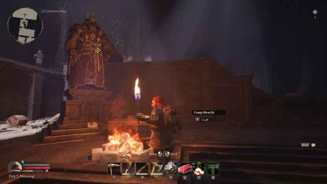 You cannot build walls and structures just anywhere. You can only build around a Hearth, meaning you have to keep building Hearths to expand the possible building area. Being able to place quick wooden platforms outside of a Hearth’s building zone, however, allows for greater mobility.