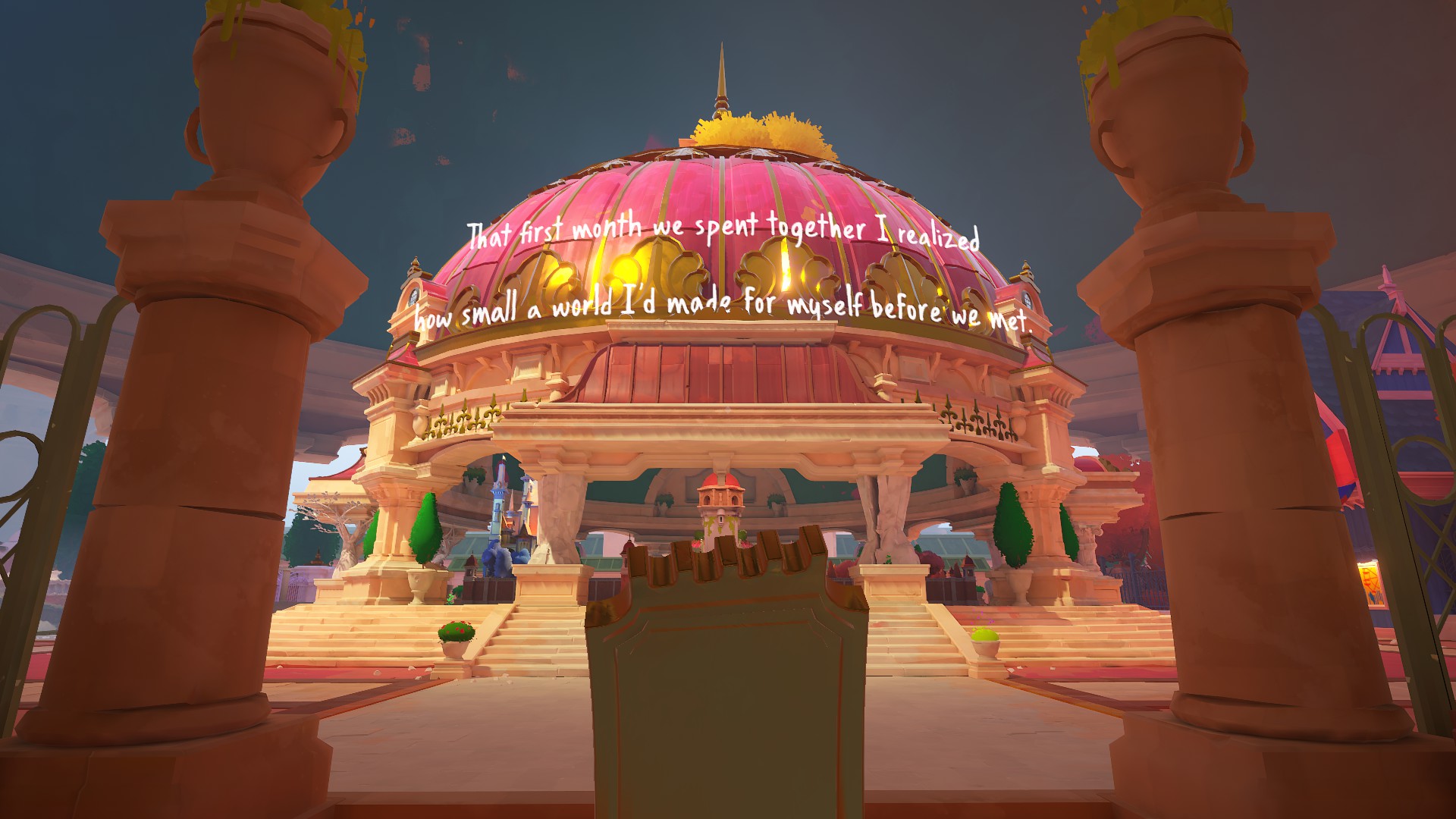 Michael and Kenzie are wonderfully brought to life by real-life married couple Seth Gabel and Bryce Dallas Howard. My jaw dropped when I saw her name in the credits, as some may know her from Jurassic World and Black Mirror. Understandably, performances of that caliber wouldn’t have occurred had Maquette‘s script not been of notably high quality. The writing is excellent, and the game’s themes and pacing are heartfelt. Maquette also contains the most believable argument that I’ve ever heard in a video game, to the point that I’m convinced that whoever wrote it ended up paraphrasing fights they themselves experienced with a significant other. Regardless, there’s a lot of honesty on display in the game, elevated by the script.