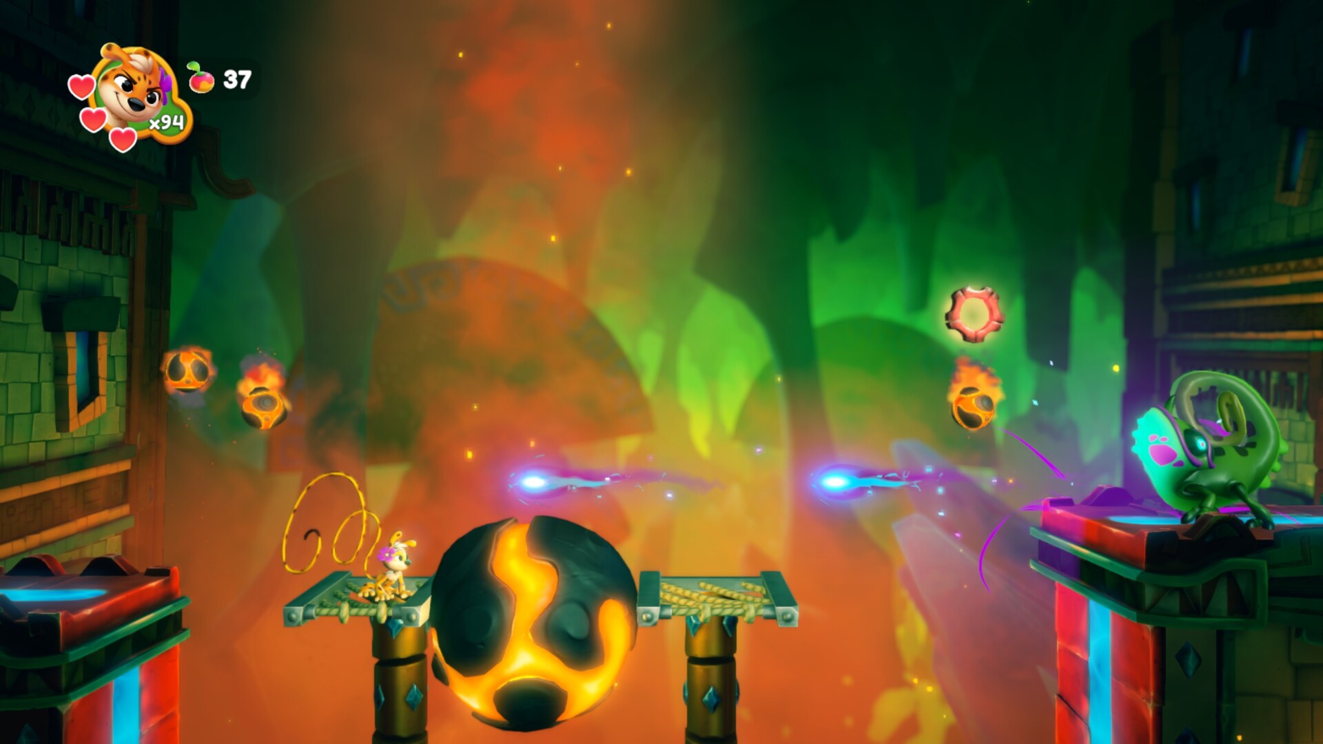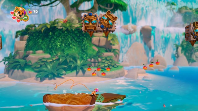 Of course, the above wouldn’t be worth as much if there wasn’t sufficient variety, but there’s plenty. Levels have a plethora of unique tricks up their sleeves, making many of them clearly stand out from one another. Due to the game’s short length, these things don’t wear out their welcome either. Marsupilami: Hoobadventure is constantly throwing different level design concepts your way. Perhaps you’re riding a giant sea creature while avoiding obstacles, or navigating in the dark, or dodging giant molten rocks. There’s a lot packed in here.