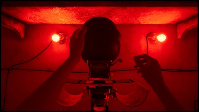 As far as gameplay goes, this is a fairly standard first-person narrative adventure. You walk around and interact with things in order to progress the story. There’s no fighting, no stealth, nothing like that. The outlier is that Giulia can take photos with her camera. Some photo ops are hidden and can only be taken with an IR lens. After taking photos, pictures can be developed by heading to the darkroom in the house’s cellar, which has a semi-realistic, simplified minigame where you expose, print, and immerse the photo. This isn’t the first game to have a dark room, but it’s well done here all the same.