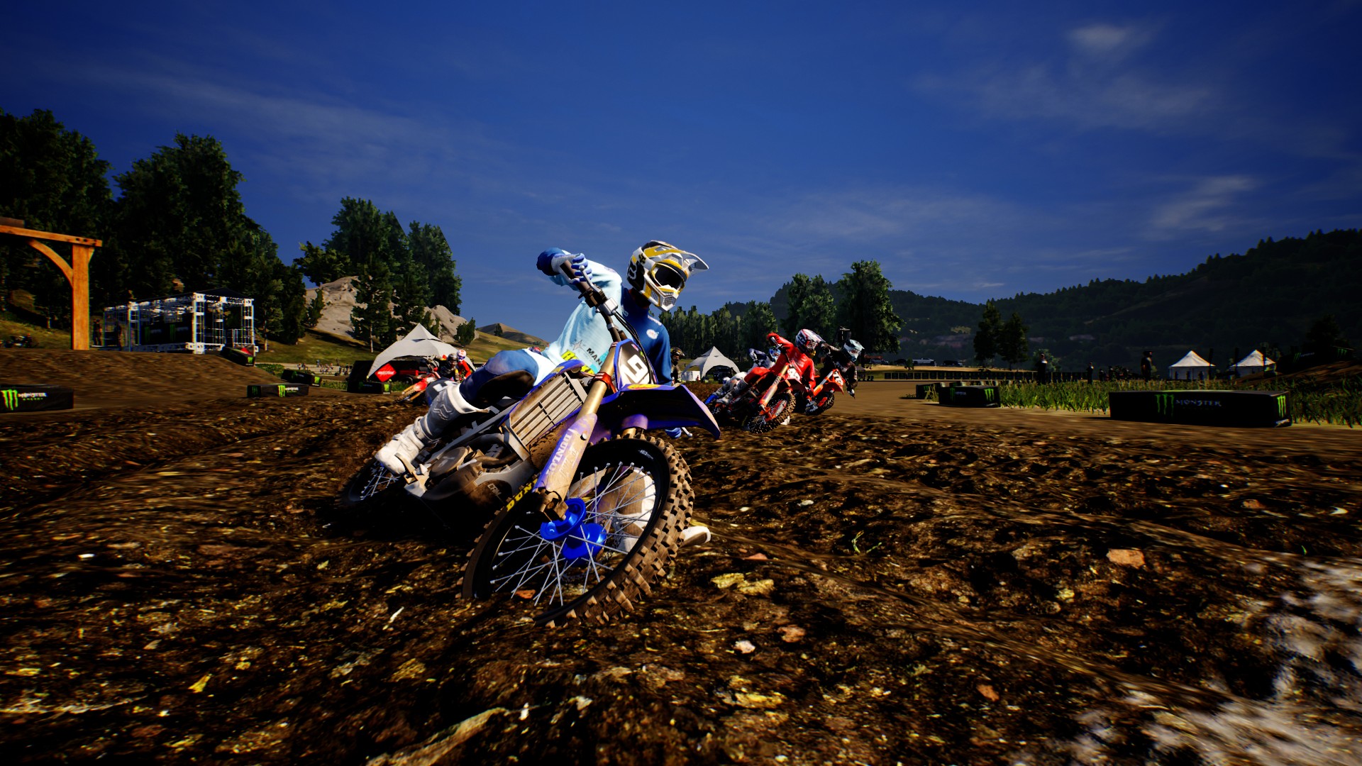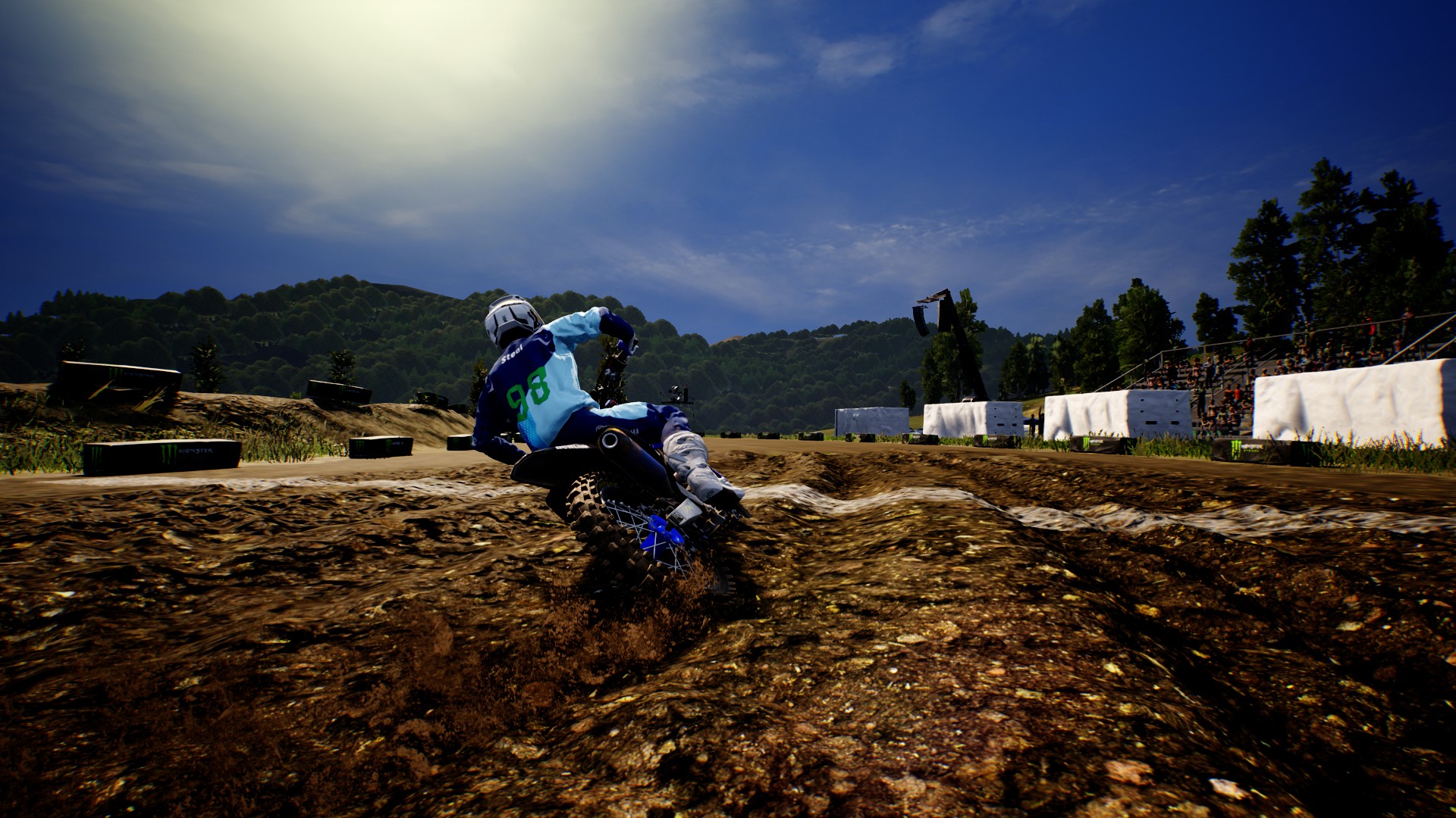 How about going from an outside track in say, the flat, subtropical scenery of Florida, to the mountains of Colorado? Options like that also would especially help with diversifying the weather factor. While there are races that take place in the rain, for instance, it took five hours for me to participate in one during the career. And even when I did, it just made everything look slightly shinier. The wet mud and grime, which should now be far thicker and slicker due to the rain, didn’t really coat the riders as it should have. This also did not make traction all that much more difficult to find and maintain, which would’ve been more realistic. If the effect is present, it wasn’t pronounced enough for me to truly notice.