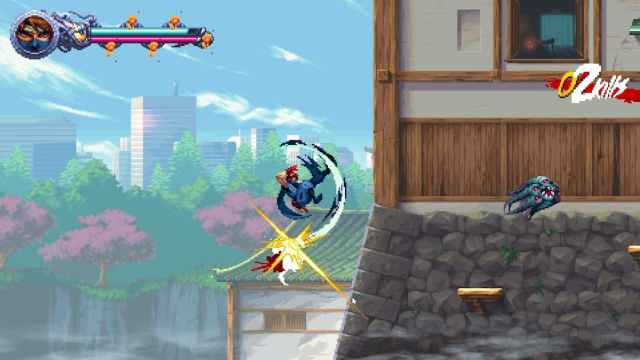 As mentioned, this is a classically designed Ninja Gaiden game, meaning most enemies go down with one hit, just like the original and the early Castlevania games. You gain some powers along the way and become stronger through new moves. Right off the bat, the first thing you’ll notice is how tight the controls, movement, and animation are. Everything just feels right. Kenji’s movement is impeccable, and you can jump, climb, and roll with ease.