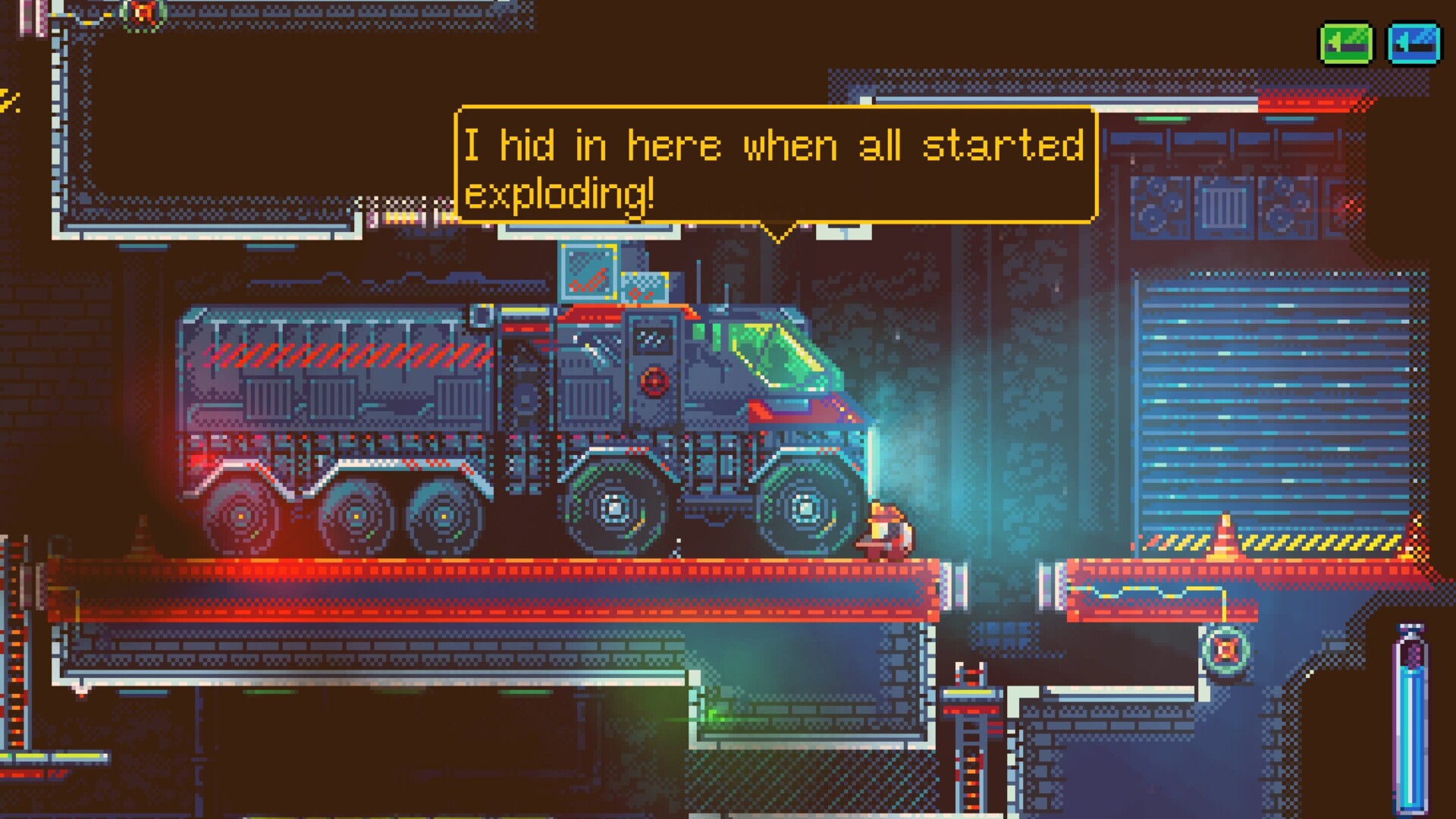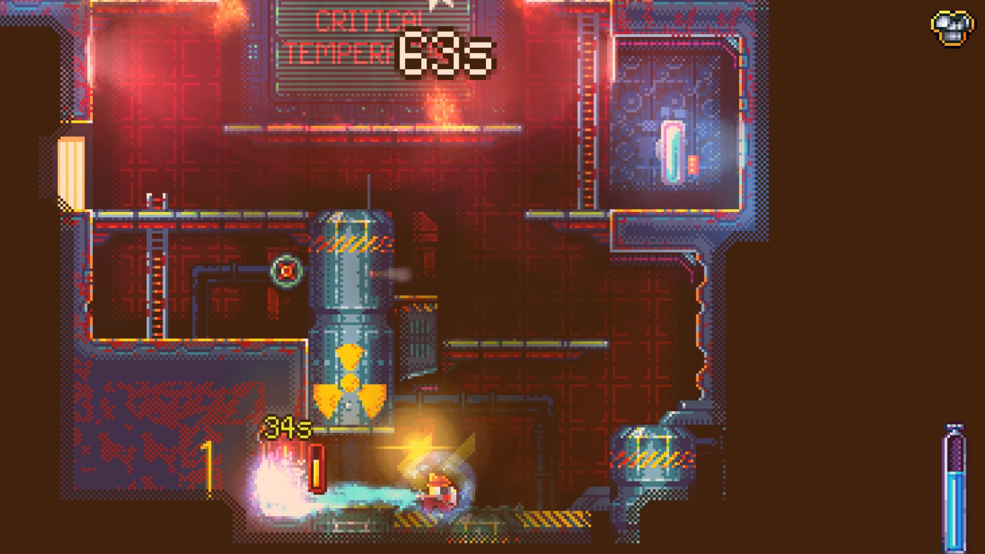 A great many of Nuclear Blaze‘s levels are punctuated by these instances of artificial difficulty to the point that I’d describe the game as plagued by it. Accessibility options will let you take extra hits or carry extra water, so you certainly have the option of saving yourself some serious frustration. Still, I enjoyed most of the things about the game outside of its artificial difficulty, which put a massive damper on things for me. I was horribly surprised, though, as Deepnight’s claim to fame, Dead Cells, is an immensely fair game. Sure, it’s super tough, but I always thought it was balanced and rewarded skill over anything else.