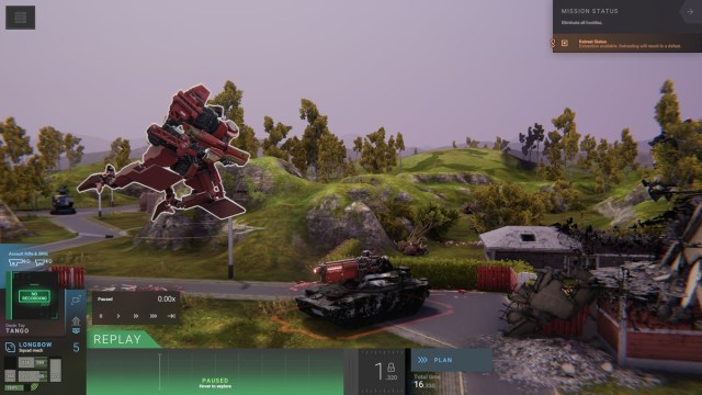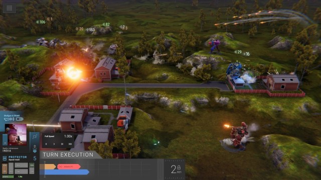 When it works, it’s very cool. As another nerd friend of mine put it, “using armored cavalry tactics and tearing the enemy forces apart is so satisfying in a very ‘Front Mission way.’” He is right; the mecha move and fight a lot more like Front Mission than Battletech. There’s an explosion of violence once the turn commences. Stray shots gauge entire rooms out of buildings. Sci-fi base towers collapse as heavy beams sweep over them. Cars are crushed without a single thought. Mecha several stories high soar on jets, leaping over terrain and onto buildings.
