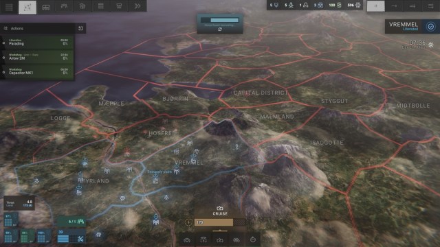 Oh, the Home Guard. When you move onto a province in the campaign map, you can start its liberation by formerly summoning the Home Guard, the resistance. Without them, stomping out all the enemy bases in the area will accomplish nothing outside of the loot you take. But once the Home Guard gets involved, you get two gouges representing the situation: Home Guard strength and the enemy strength. Enemy strength is sapped by fighting, but the best way to go about is to attack critical locations (or, sometimes, critical patrols).