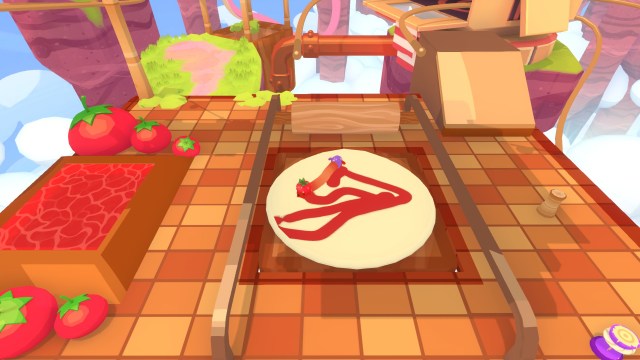 Levels also have separate sub-themes. If you’re in the food world, then the theme of a particular level might be dessert. More importantly, you will find new contexts to test existing mechanics while being introduced to more in the process. The strings of puzzles in each level get increasingly more elaborate, opening the door to more opportunities for expression and creativity. In one level, we had to customize a giant pizza, using a cannon to fire toppings at the base. Every playthrough with a new friend is a different story to tell.