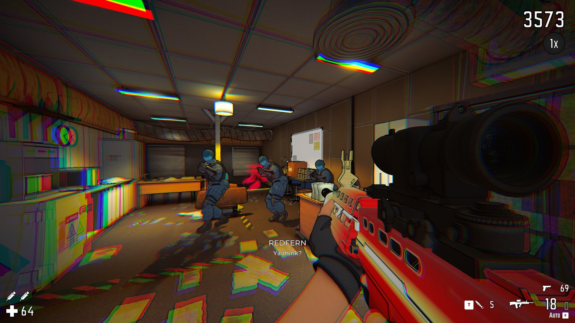 Much like last time, you can play RICO: London co-op with another player. However, this game’s co-op is not even close to ready. Enemies mostly seem to only register one of you at a time, so they’ll often fail to acknowledge the second player they see. I also saw multiple instances of enemies not spawning into rooms until I entered them, as well as enemies who were often turned the other way when we entered. In single player, they were almost always looking right at me as I came through the door.