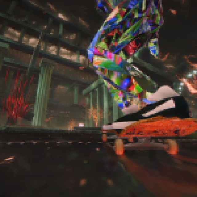 The way your Skater’s body shatters into a million pieces, the rawness of the grinding, the thumping of each stomp, and the way scenes transition seamlessly during gameplay all contribute to the experience. The sense of speed conveyed through color bleed, the camera, and FOV is truly majestic. It sounds like a dream, and every single effect feels as if it fits into the world with ease. My compressed screenshots can’t do it justice.
