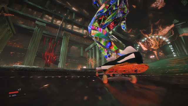 In Skate Story, you play as a demon made of glass and pain who also happens to be a massive fan of the art of skateboarding. Your purpose in the Underworld is to devour the many colorful moons that keep the night alive in these depths. The why and how are not important, and while those ideas are touched upon as you play through its campaign, a certain level of ambiguity is maintained to ensure that the focus remains on the characters and themes.