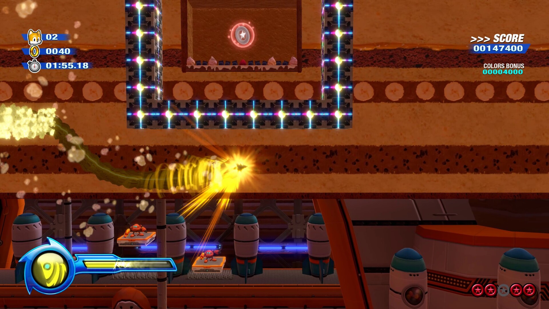 Like the colored switches in Super Mario World, you unlock more Wisps as you progress. You can go back to levels you’ve already completed and use the unlocked Wisps to investigate the areas top to bottom. They’re fun to use; transforming into a drill to dig through layers of a giant cake while hunting down secrets just doesn’t get old. After Colors, Wisps have become something of a staple for subsequent Sonic games. But they’re used to their greatest potential here in Sonic Colors.