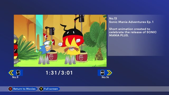 The Museum is where you spend all those coins you earn in the game. Inside is a plethora of Sonic-based extras, such as music from the games, concept art, box art, instruction manuals, remixed music, and more. I just wish it was easier to navigate. Origins will announce whenever you unlock something new, but it won’t tell you what. I went back multiple times to figure out what items I unlocked but gave up after a while. It doesn’t help that there’s no music in the menu, and the selection noise gets grating. The Museum does include all episodes of Sonic Mania Adventures and pared-down versions of the 30th Anniversary Symphony event. But you can also find better and higher-quality versions elsewhere.