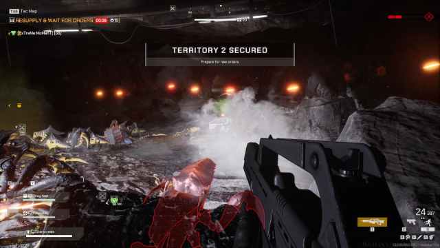 There’s a decent variety of bugs in Starship Troopers: Extermination, and you’ll get used to their special attacks after a few matches. While most of these pose a direct threat at close quarters, some bugs like the Gunner will stick back and attack you from afar. It’s important to prioritize targets because the larger bugs will deal tons of damage to you and the base.