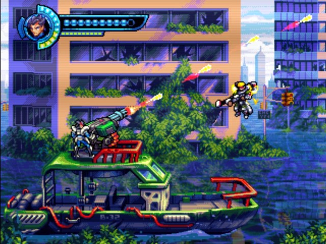 The story follows resistance fighter Taro Takahashi as he embarks on a revenge mission against dictator Magnus Pierce and his army. Steel Assault takes you through beautiful, war-torn environments that bring the game to life, while also preserving the retro feel of classic arcade games with its 16-bit style. While there is little storytelling, the game’s short cutscenes and visuals do just enough to give you a reason to go fight enemies. Naturally, the gameplay is much more important in these types of games and, thankfully, it doesn’t disappoint.
