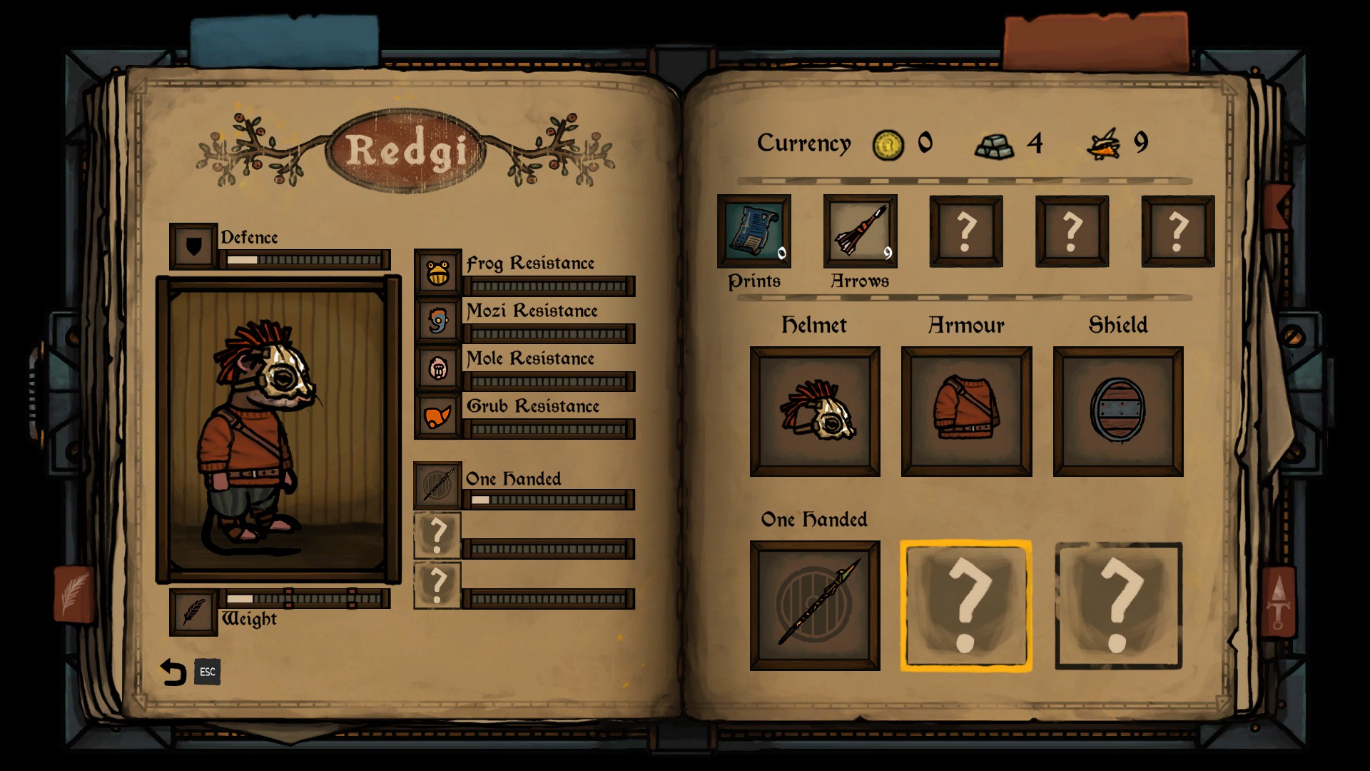I also can’t really say how much the weight system in Tails of Iron impacts the gameplay. Redgi has three maneuverability categories based on how much his stuff weights, and I can’t say I ever made to the third, which presumably trades a lot of agility for protection. Partially it was because I always aimed for the lightest one. But by the end of the game I don’t think I had gear that would have made going heavy a rational choice.