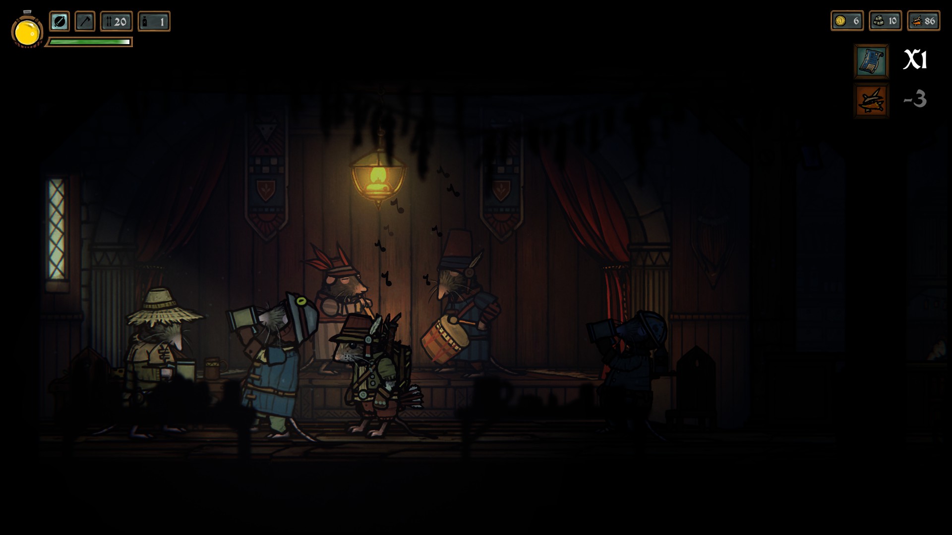 Oh, and the sound design matches it. The developer really knew how to get the best bang for its buck. Odd Bug hired but a single voice actor, the voice of Geralt of The Witcher fame, Doug Cockle, to voice the narrator. The rats and other characters communicate in chirps and pictorial speech bubbles, so this is a delightful combo that works really well in execution. The music is great too, with each area having its distinct theme and a bard you can find playing it.