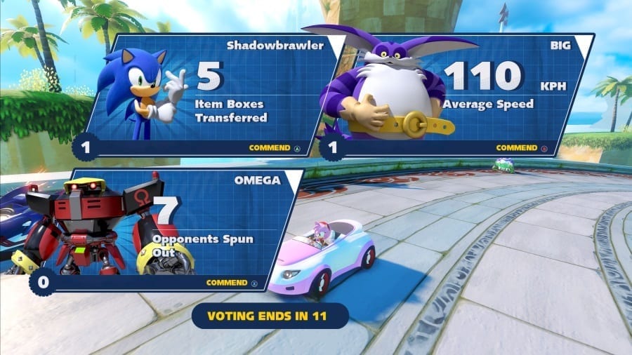 Connections to the online portion of Team Sonic Racing have been spotty to say the least. There were times when I would get thrown into a match with little to no wait. Other times, I was waiting around and wondering if the lobby was ever going to get full or when everyone would ready up. However, once I’m able to jump into the action, the team-based gameplay works as well online as it does playing through the campaign solo.